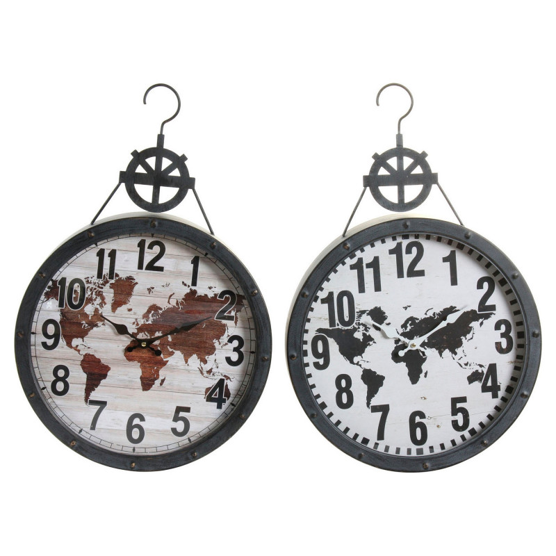Dacă vă place să îngrijiți fiecare detaliu din casă și să aveți ultimele produse în vogă care vă vor face viața mai ușoară, cumpărați Ceas de Perete DKD Home Decor Alb Maro Negru Geam Fier Harta Lumii (2 pcs) (40.5 x 7 x 62 cm) la cel mai avantajos preț.