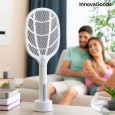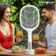 O rachetă reîncărcabilă pentru uciderea insectelor cu lumină UV, care este foarte eficientă pentru a scăpa de muște, țânțari și alte insecte zburătoare cu ușurință și într-un mod curat și ecologic. Nu există mirosuri sau produse chimice dăunătoare sănătății sau care poluează mediul (eco-friendly). Designul său multifuncțional original și versatil înseamnă că poate fi folosit în 2 moduri: manual, ca rachetă electrică pentru uciderea insectelor sau ca lampă UV pentru alungarea țânțarilor și a altor insecte. Lumina sa UV scăzută atrage insectele, deci este deosebit de eficientă în întuneric și nu deranjează și nu afectează somnul pe timp de noapte. Insectele vor fi ucise pe măsură ce intră în contact cu rețeaua electrică internă. Pot fi atrase de lumina UV sau lovite cu paleta. Dispune de plasă de protecție externă și întrerupător dublu pentru o siguranță totală, prevenind orice șoc electric în timpul utilizării sau manevrării. Deoarece este ușoară, reîncărcabilă și portabilă, poate fi poziționată pe orice suprafață plană și stabilă și poate fi luată oriunde cu ușurință. Este potrivită atât pentru interior, cât și pentru exterior. Baza de încărcare poate fi folosită și ca suport și va conferi decorului un aspect modern.