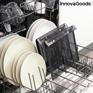 Un set de 2 plase pentru grătar, perfecte pentru prepararea la grătar a legumelor și a altor produse alimentare de mici dimensiuni, fără ca acestea să se lipească sau să cadă în foc și să se ardă. Sunt foarte practice și ușor de utilizat: introduceți pur și simplu alimentele în plase și așezați-le pe grătar (niciodată direct pe flăcără). Alimentele se gătesc mai bine și au o aromă mai plăcută deoarece fumul trece prin plasă. Întoarceți pur și simplu plasele pentru a coace alimentele și pe cealaltă parte. Fiind în interiorul pungilor, alimentele nu se dispersează și nu cad în foc în timp ce se coc, iar când sunt coapte, pot fi îndepărtate ușor de pe grătar datorită materialului antiaderent al plaselor. Plasele sunt, de asemenea, ușor de curățat în mașina de spălat vase. Un mod mai igienic și mai eficient de a prepara alimentele pe grătar.
